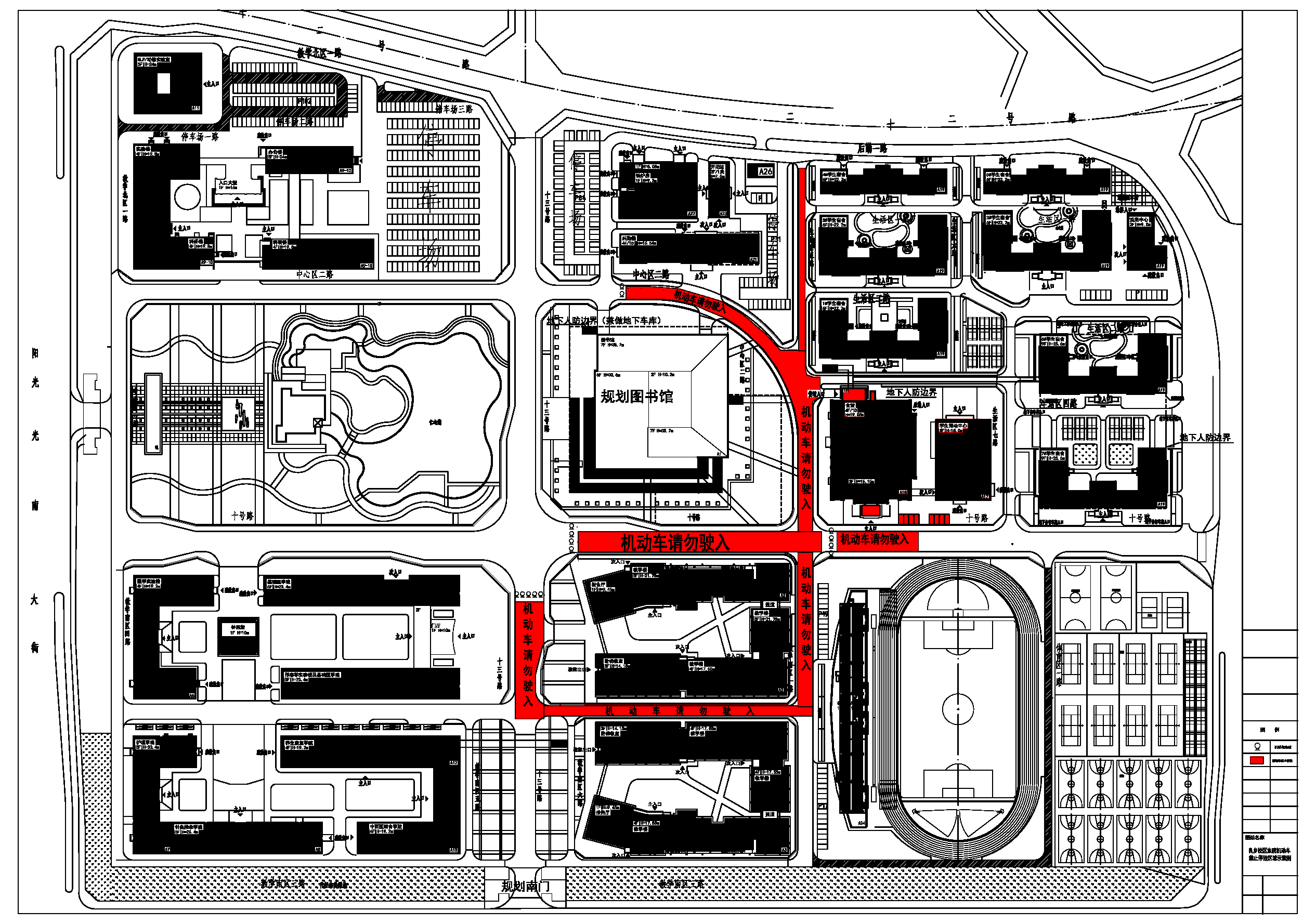 良乡校区已经投入使用,校内车辆逐渐增多。为保证师生安全,现已将良乡校区的教学区域和学生生活区域划定机动车禁停区。具体内容如下: